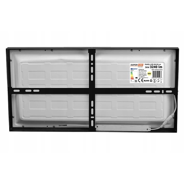 LED svetelný panel 60x30cm, 36W, 3240lm, 4000K, prisadený čierny