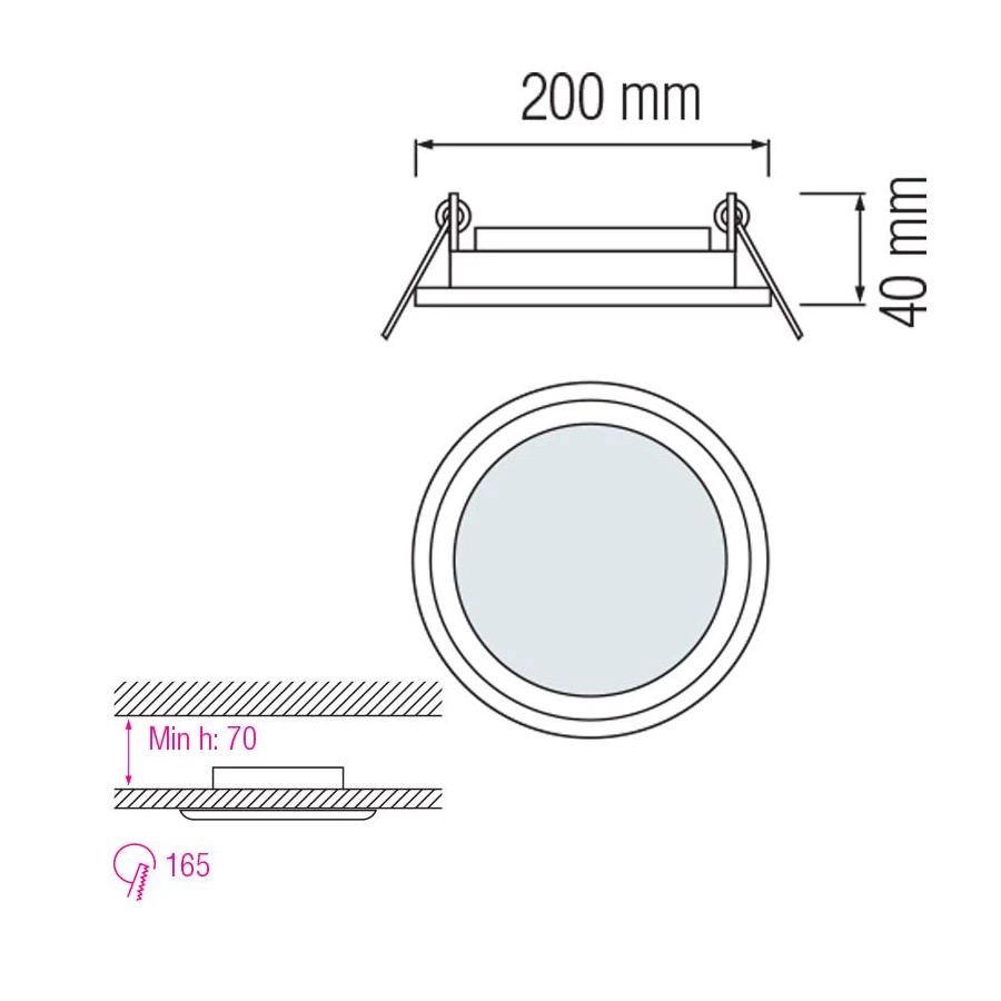 230VAC, 4200K, 1150lm, CRI>80, uhol 120°, 200x40mm, m.otvor165mm
