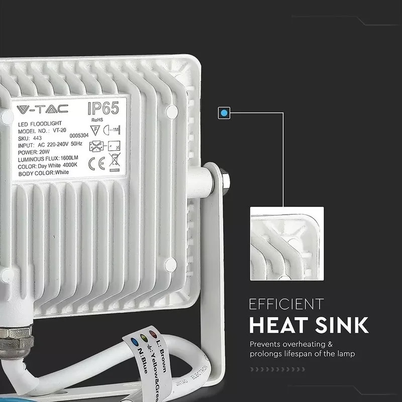 Telo reflektoru je vyrobené z pevného hliníka s krytím až IP65 – to znamená že počasie nemá absolútne žiadny vpliv na životnosť reflektora (je vode aj prachu odolný).
