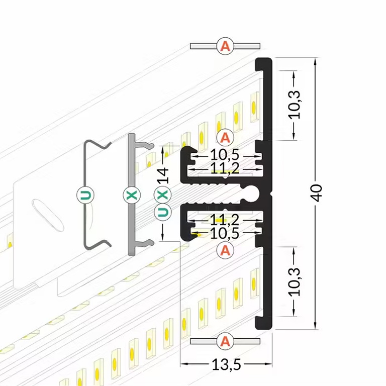 Jedná sa o profil s variabilitou nasvietenia. Umožňuje priame svietenie v dvoch smeroch (hore/dole, vľavo/vpravo).