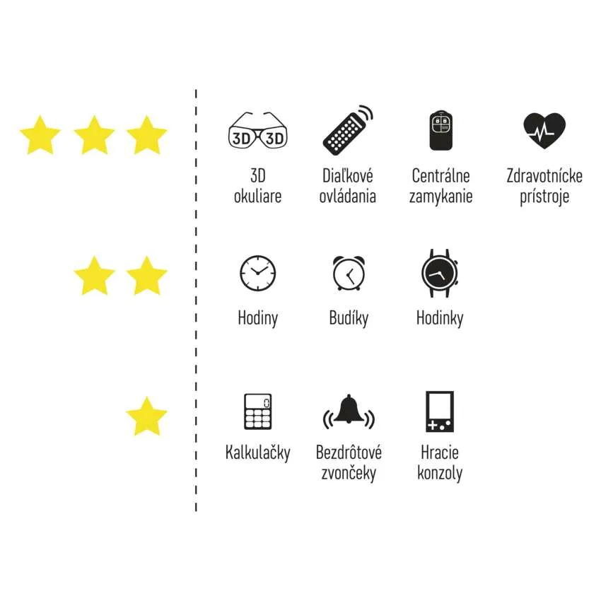 • Táto batéria je najlepšou voľbou pre SMART ovládanie vašich LED systémov, kde potrebujete dlhodobú spoľahlivosť bez častej výmeny.• Odporúčame ju mať vždy v zásobe, keďže vďaka 10-ročnej skladovateľnosti vás nikdy nenechá v tme.