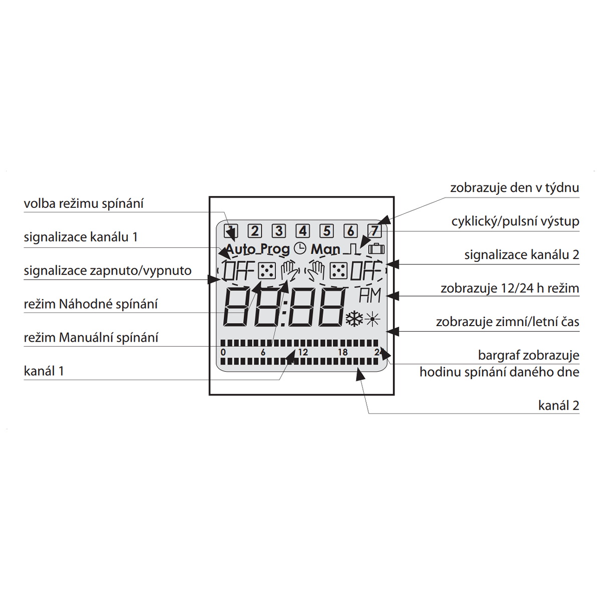 Tieto jednokanálové digitálne spínacie hodiny sa používajú na ovládanie spotrebičov v závislosti na reálnom čase v dennom a týždennom programe.