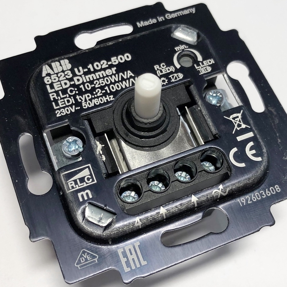 Prístroj stmievača pre regulovatelné LED žiarovky, pre otočné ovládanie a tlačidlové spínanie 6523 U-102-500, 2CKA006512A0335