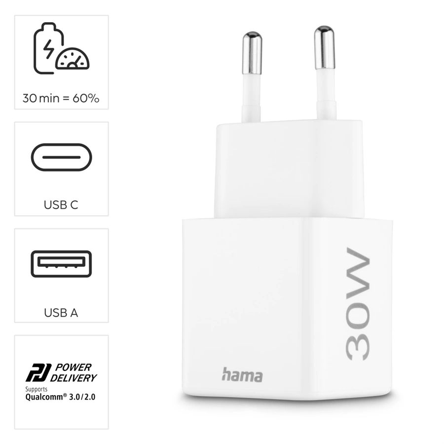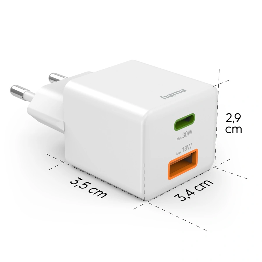 Sieťová nabíjačka HAMA 30W, 1x USB-C/PD30W, 1x USB-A/QC18W