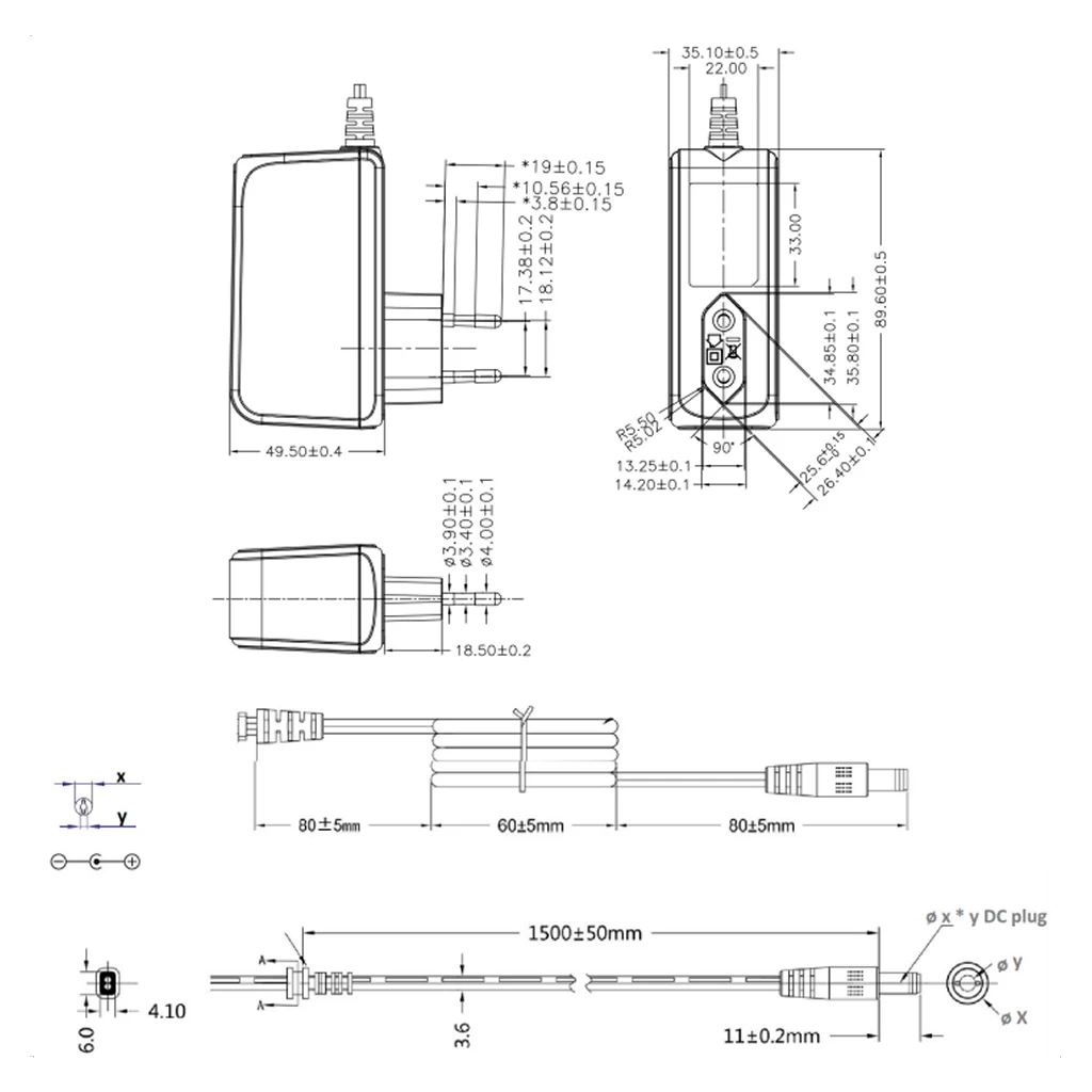 vstup 90~264VAC, prívodný kábel 1.5m, IP20, rozmery 90x87x35.2mm