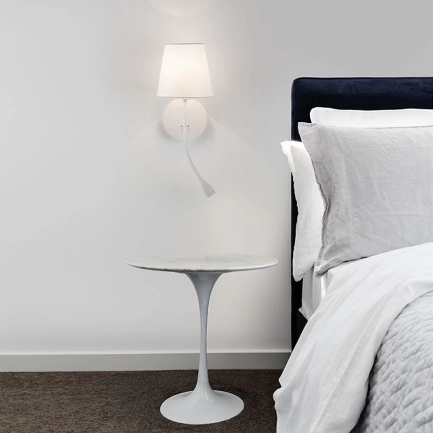 Ak hľadáte elegantné, priestorovo úsporné a multifunkčné riešenie osvetlenia pre spálňu či hotelovú izbu, ktoré poskytne príjemné ambientné svetlo aj koncentrované svetlo na čítanie, nástenné svietidlo NOVA LUCE Nia je ideálna voľba. Stačí pridať dizajnovú E14 LED žiarovku a môžete si užívať dokonalú pohodu.