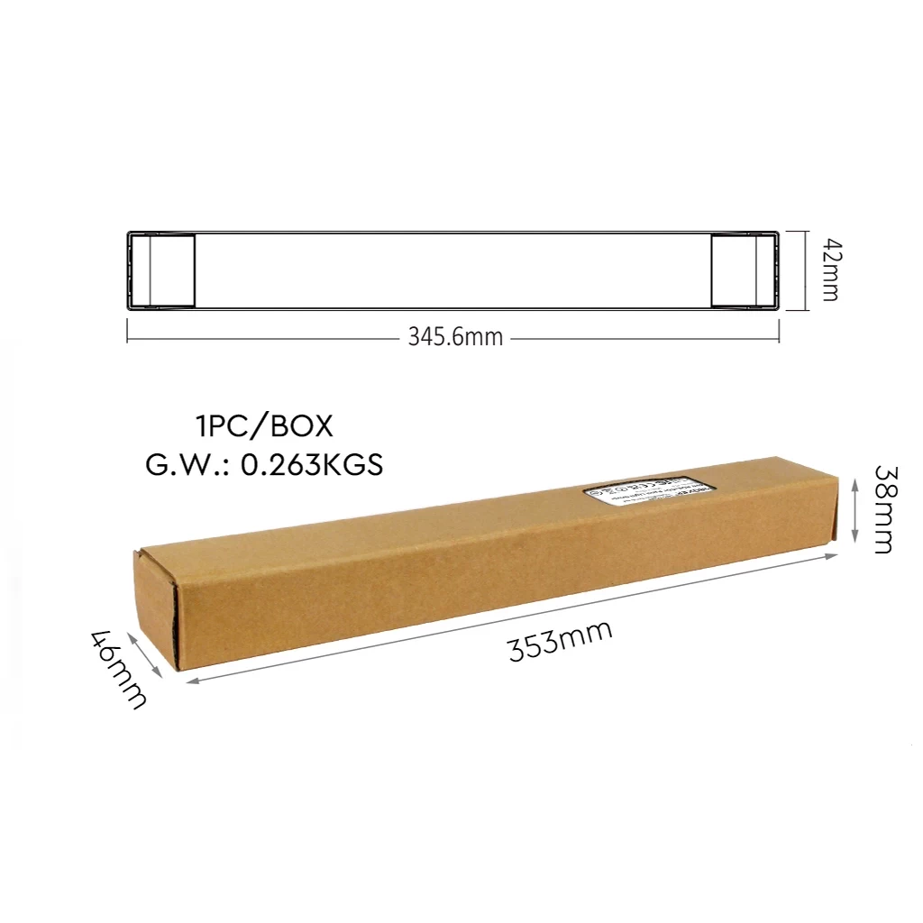 vstup 180~240VAC, 50/60Hz, PF0.9, 2.4GHz RF, rozmery 346x42x31mm