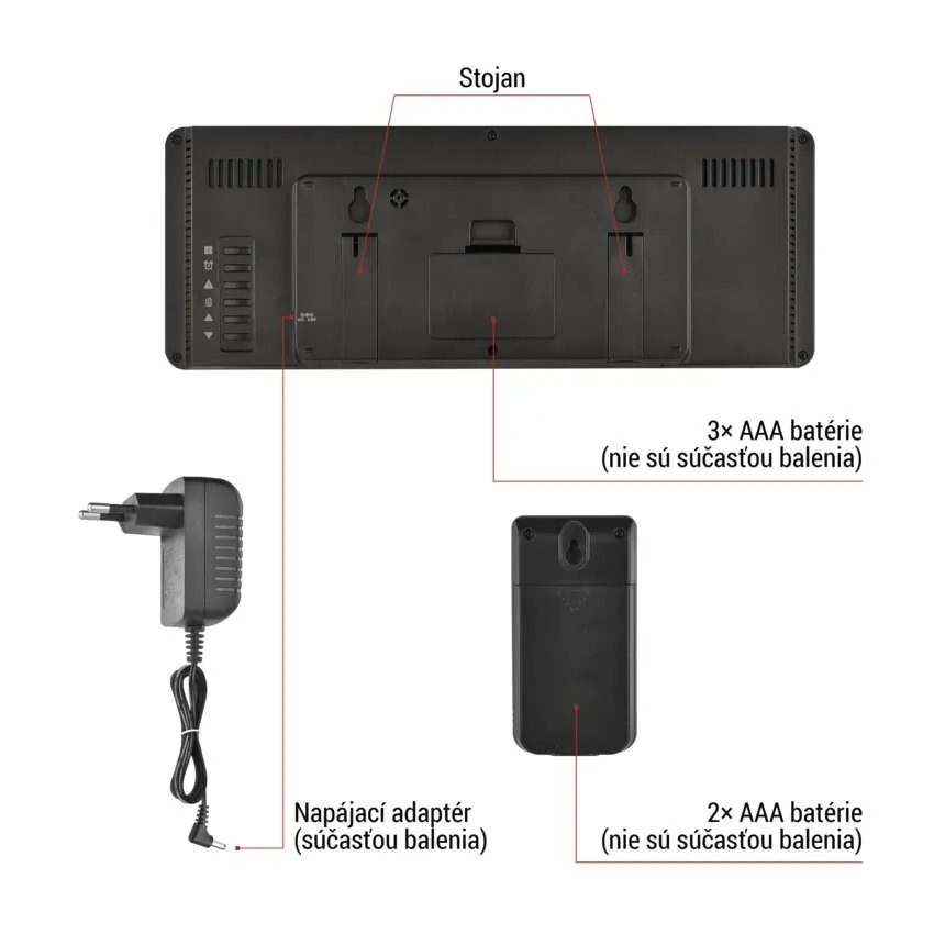 | Napájanie stanice | 3× 1,5 V AAA (nie sú súčasťou balenia) |
