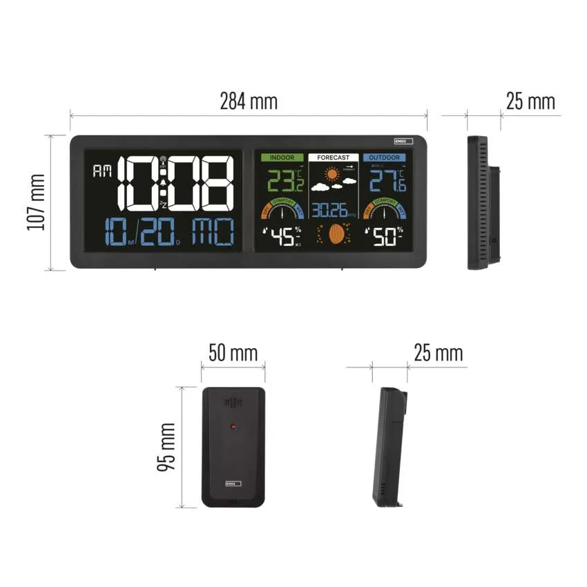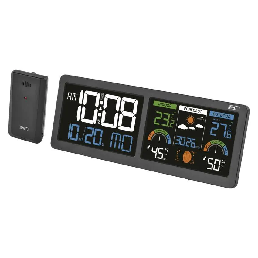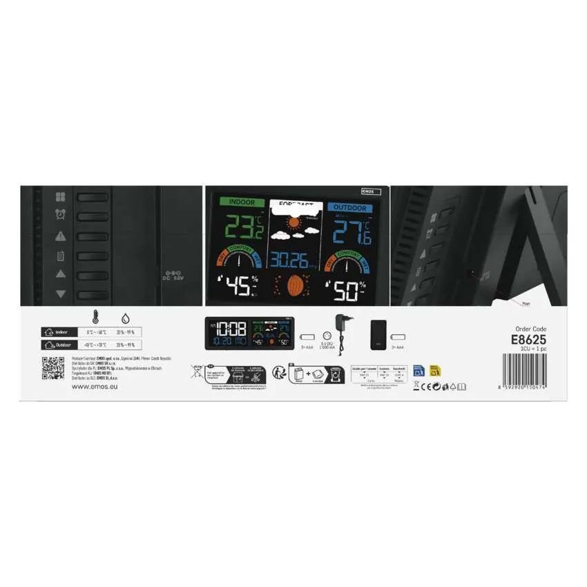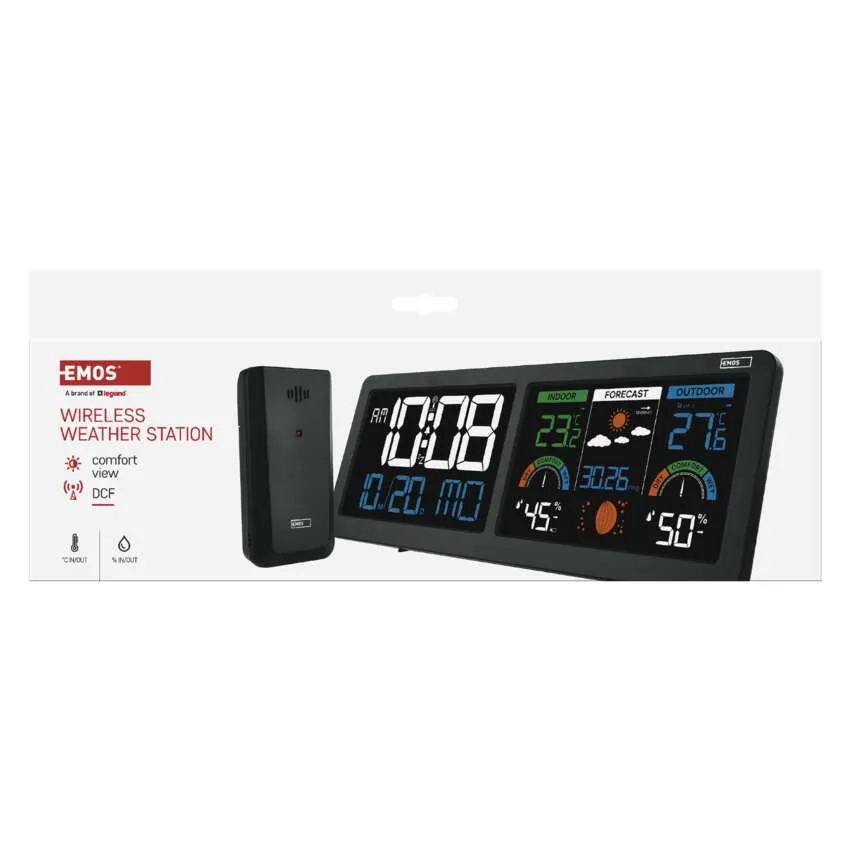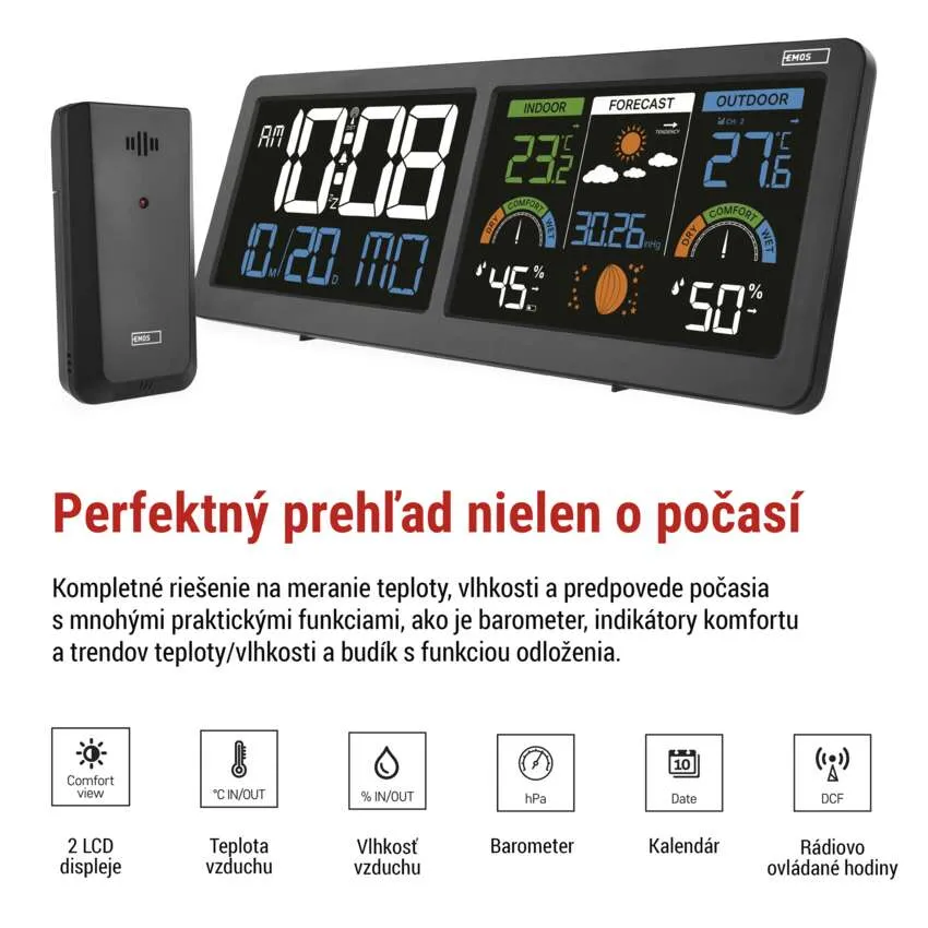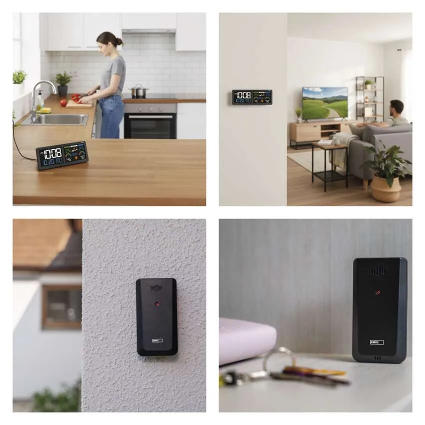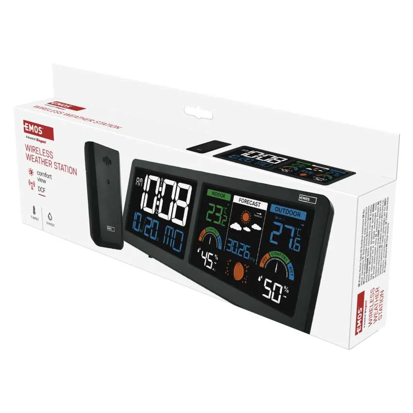 Sledujte počasie ako profesionál s modernou meteostanicou EMOS E8625. Tento štýlový doplnok do vašej domácnosti disponuje unikátnym riešením v podobe dvoch podsvietených LCD displejov, ktoré poskytujú maximálny prehľad o čase a klimatických podmienkach. Prístroj presne meria vnútornú aj vonkajšiu teplotu a vlhkosť vzduchu, pričom vonkajší senzor má dosah až 80 metrov.