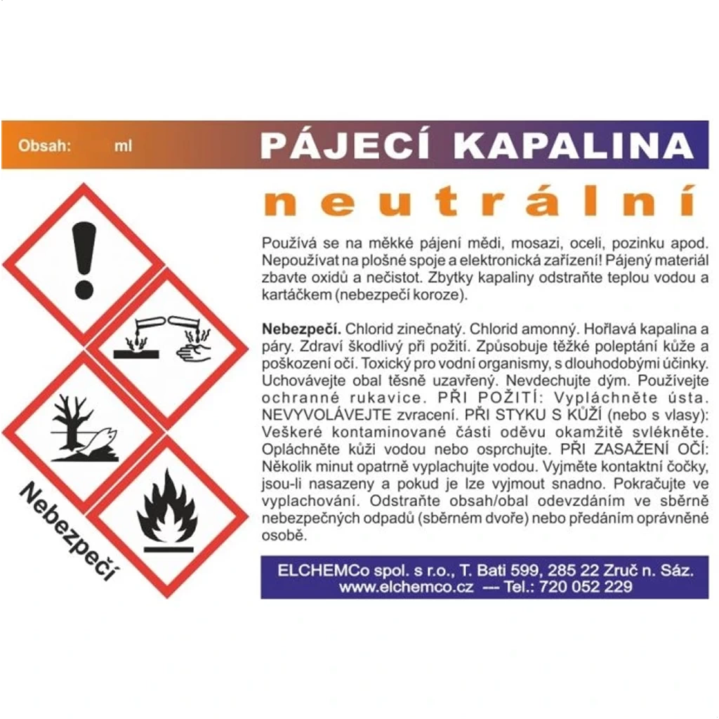 • Typ tavidla: neutrálna spájkovacia kvapalina (oplachová)