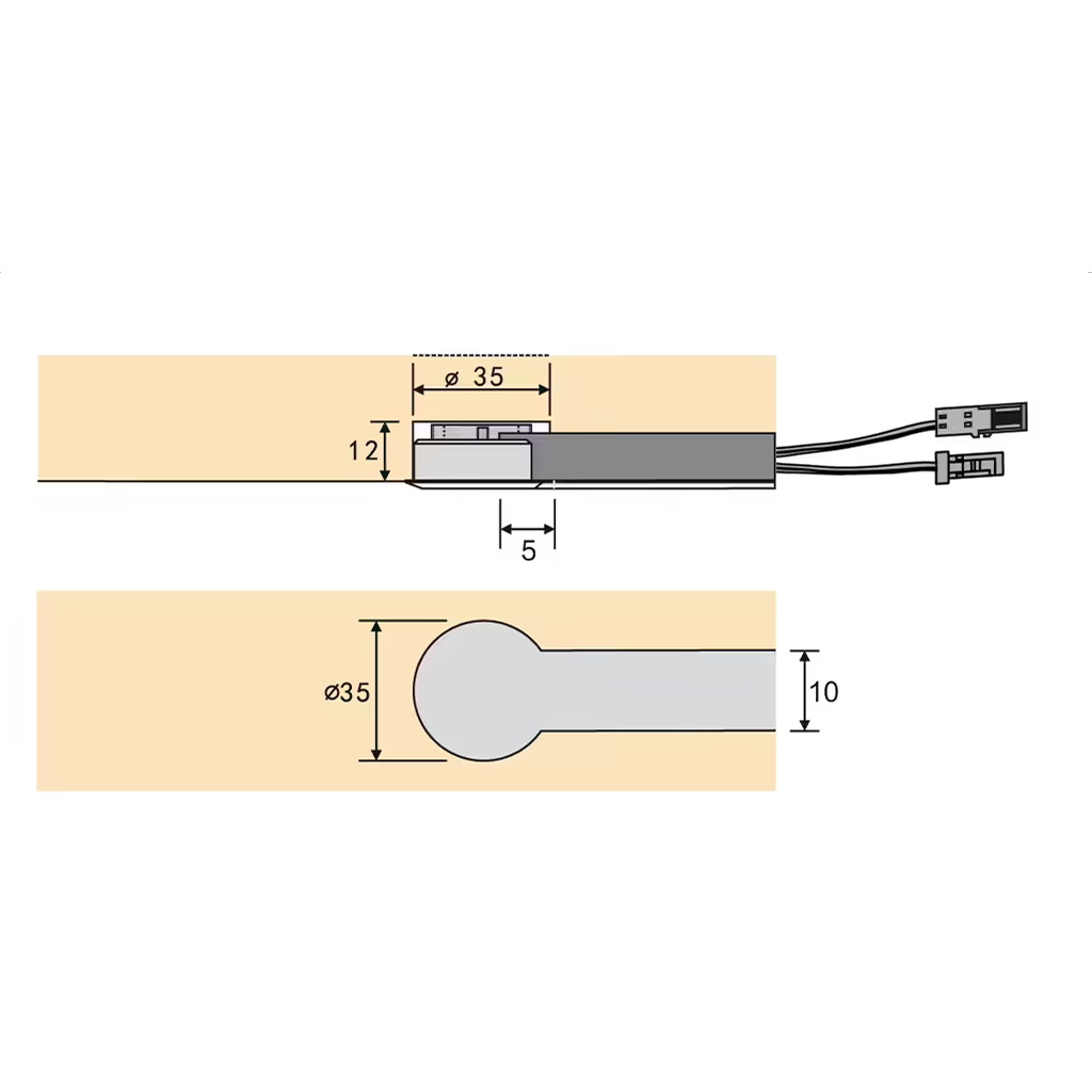 Tento kapacitný spínač a stmievač je určený na zafrézovanie, najmä pre inštaláciu do nábytku, sadrokartónu, alebo kamkoľvek do interiéru, kde chcete ovládať svetlo mávnutím ruky.