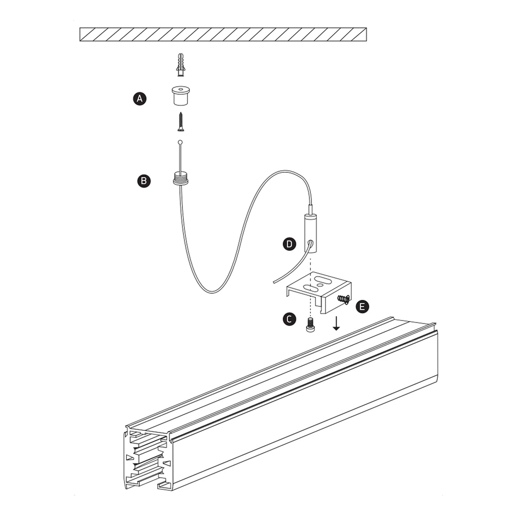 Chcete umiestniť svoje koľajnicové osvetlenie do priestoru s vysokým stropom? Tento profesionálny záves pre 3-fázovú lištu od ONE Light vám umožní elegantne spustiť celý systém do požadovanej výšky. Sada obsahuje pevné oceľové lanko s dĺžkou 2 metre, ktoré je plne nastaviteľné, takže výšku lišty si prispôsobíte presne podľa potrieb vášho interiéru. Čierne kovové prevedenie komponentov dokonale ladí s koľajnicami a svietidlami rovnakej farby, čím vytvára moderný industriálny alebo minimalistický vzhľad. Tento závesný systém je ideálnym riešením pre galérie, jedálne stoly, bary či obchodné priestory, kde je kladený dôraz na dizajn a variabilitu.