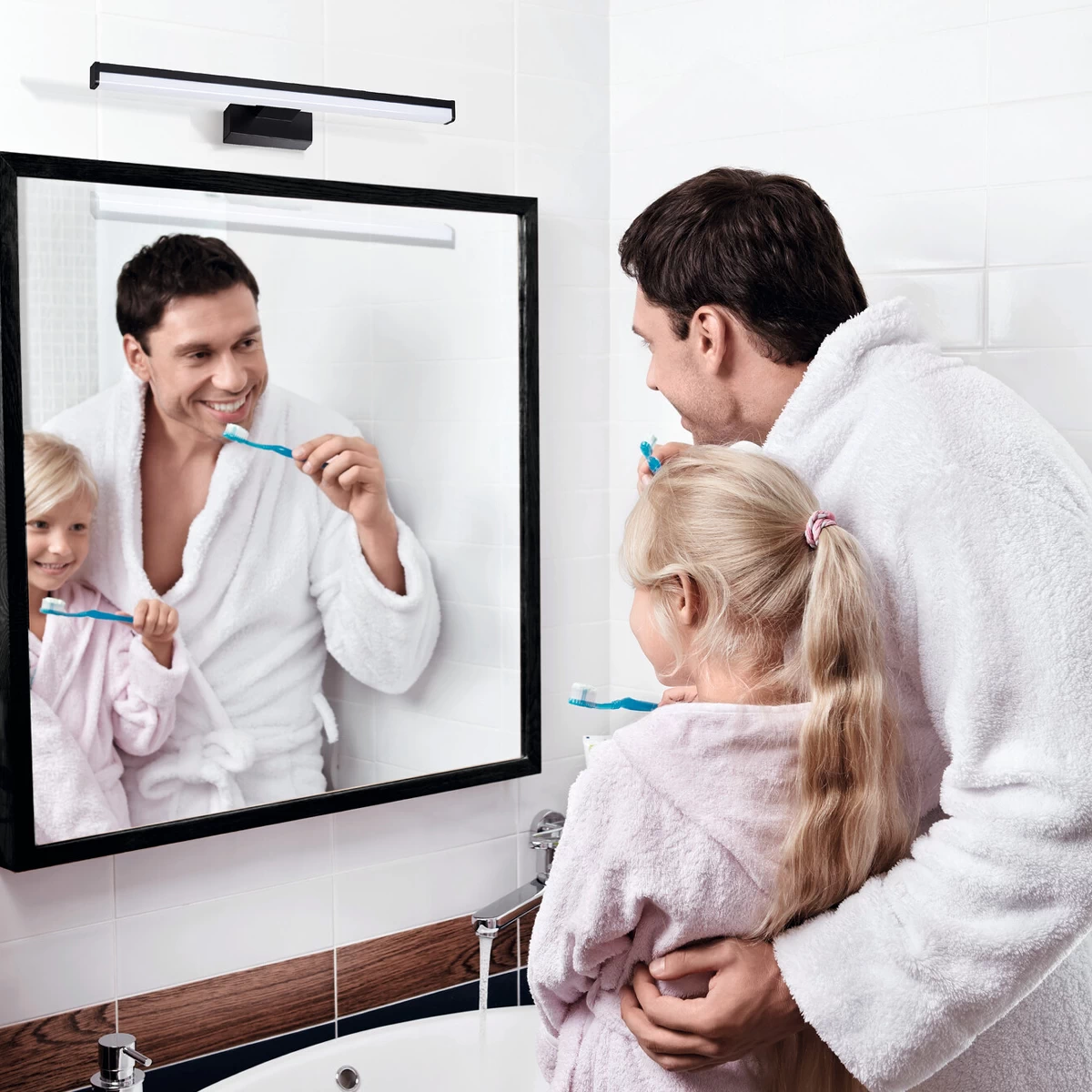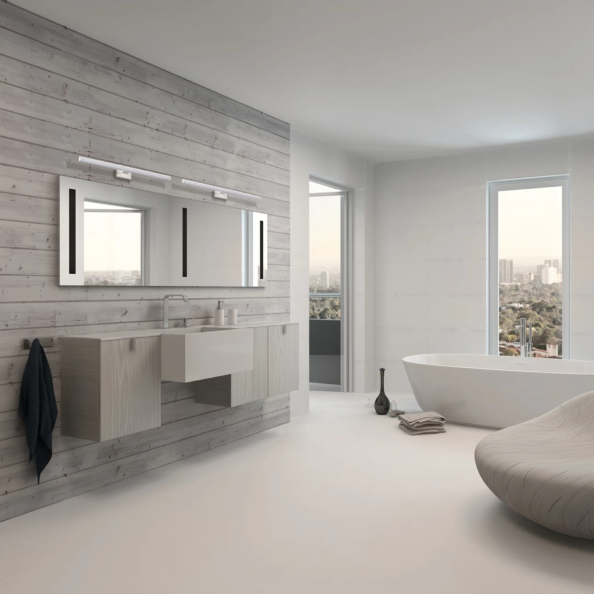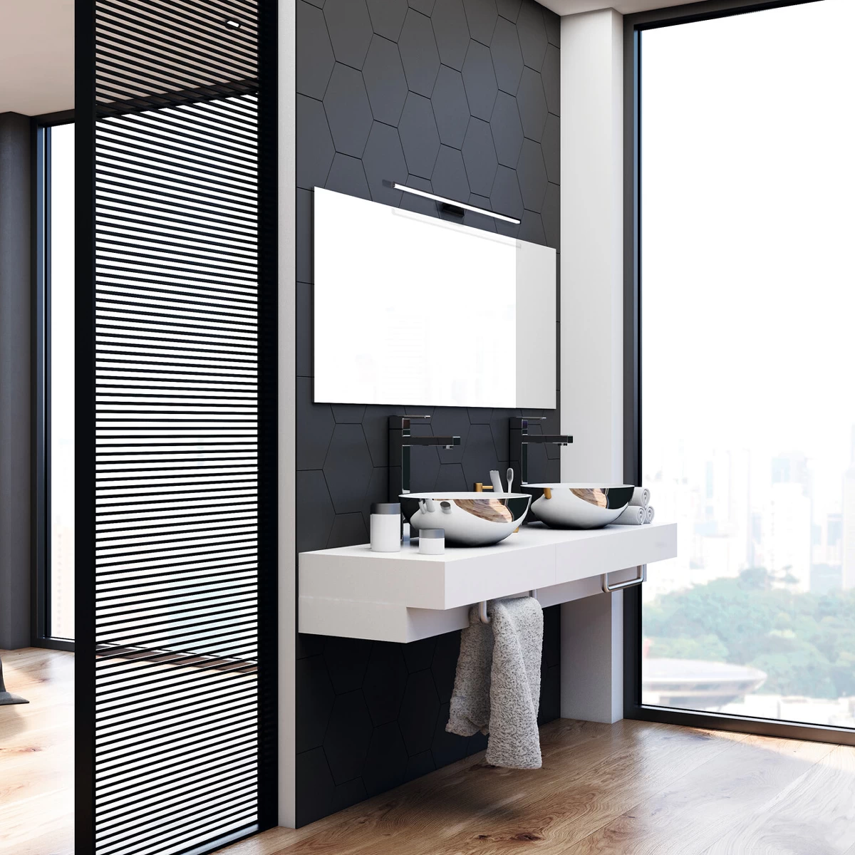 • Moderný dizajn: Podlhovastý, minimalistický tvar a mliečny difúzor nasmerujú svetlo presne tam, kam potrebujete – dole na zrkadlo alebo obraz.