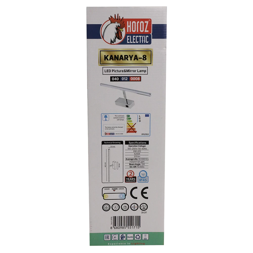 Hľadáte ideálne osvetlenie, ktoré dodá vašej kúpeľni moderný vzhľad a zároveň poskytne funkčné svetlo? LED svietidlo KANARYA v elegantnom chrómovom prevedení je navrhnuté špeciálne pre montáž nad zrkadlo alebo obrazy. Vďaka stupňu krytia IP45 je toto svietidlo vysoko odolné voči striekajúcej vode a vlhkosti, čo z neho robí bezpečnú voľbu do kúpeľňových priestorov. Integrovaný LED zdroj s výkonom 8W plnohodnotne nahrádza klasickú 45W žiarovku, čím výrazne šetrí vaše náklady na energiu. Farba svetla 4200K (neutrálna biela) je ideálna pre každodennú hygienu, líčenie či holenie, pretože verne zobrazuje farby a neunavuje oči. Čisté línie a lesklý povrch z neho robia štýlový doplnok, ktorý zapadne do každého moderného interiéru.