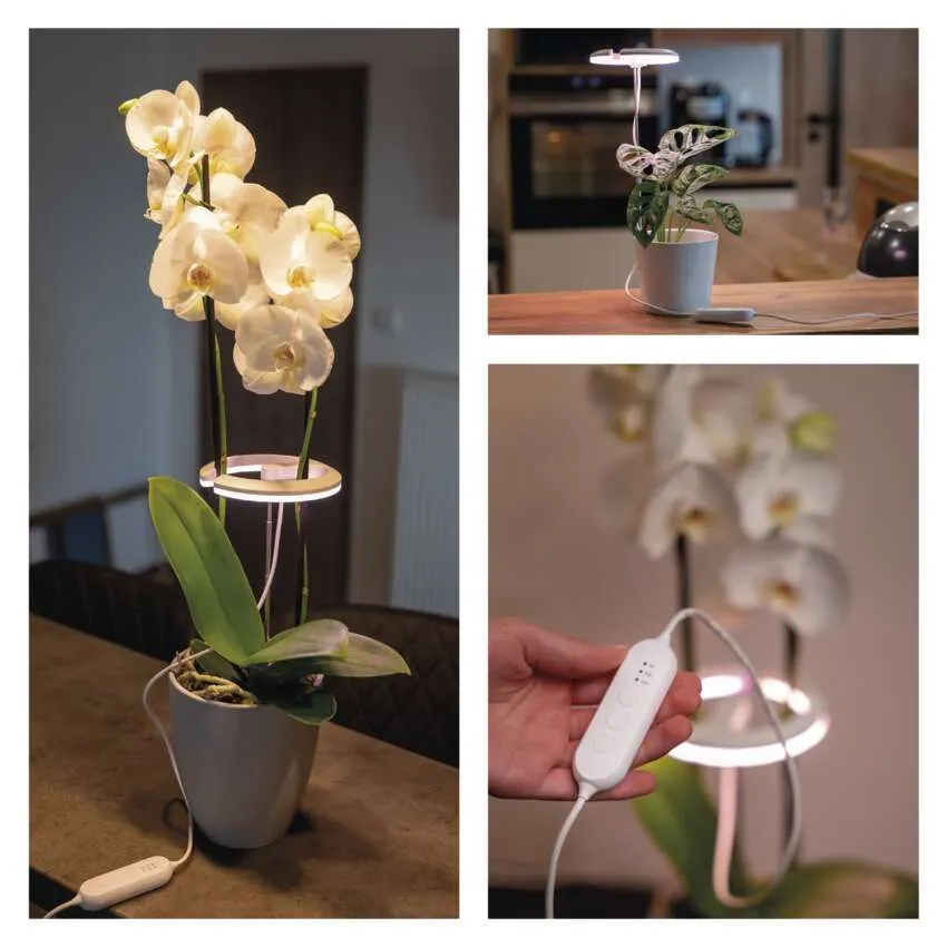 Tento štýlový doplnok v bielej farbe disponuje teleskopickou tyčou, vďaka ktorej svetlo presne prispôsobíte výške vašej rastliny. Integrovaný časovač a funkcia stmievania vám umožnia plnú kontrolu nad intenzitou a dĺžkou osvetlenia, čím eliminujete stres rastlín z nedostatku svetla. Výsledkom je sýtejšia zelená farba listov, silnejšie stonky a podpora bohatého kvitnutia.