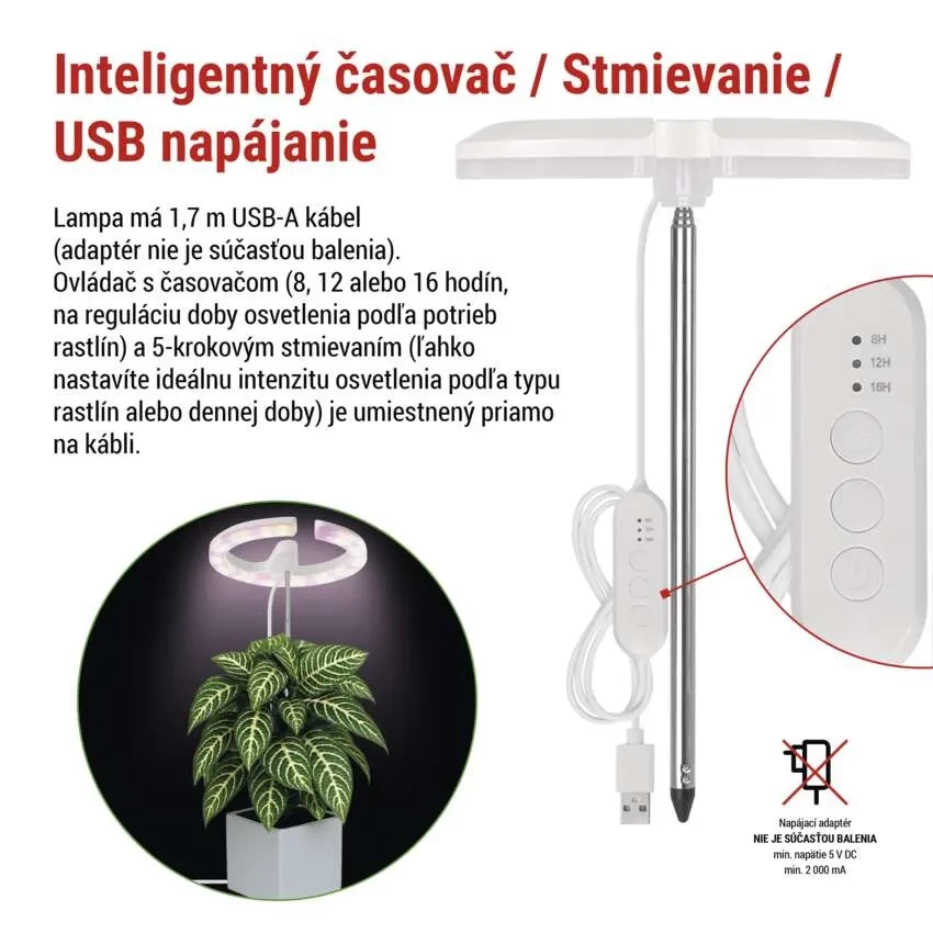 Lampa EMOS Z7902 je neoceniteľným pomocníkom najmä pre pestovanie orchideí a citlivých izbových rastlín, pretože umožňuje osvetlenie zdola či z boku bez rizika prehriatia listov. Odporúčame ju každému, kto hľadá efektívny a estetický spôsob, ako udržať domácu džungľu zdravú po celý rok.Poznámka: Pre správnu funkčnosť odporúčame zakúpiť vhodný napájací USB adaptér (5V/2A) z našej ponuky TU.