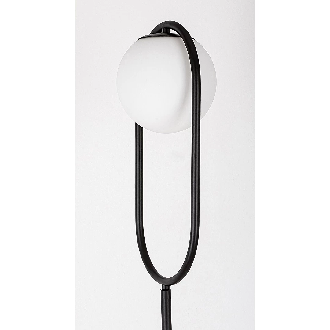 Čierny model vyrobený z kovu sa vyznačuje guľovitým bielym skleneným tienidlom, ktoré je spojené s hornou časťou predĺženého zaobleného prvku svietidla. Stabilitu svietidla GHITA zabezpečuje okrúhly, čierny ozdobný podstavec.