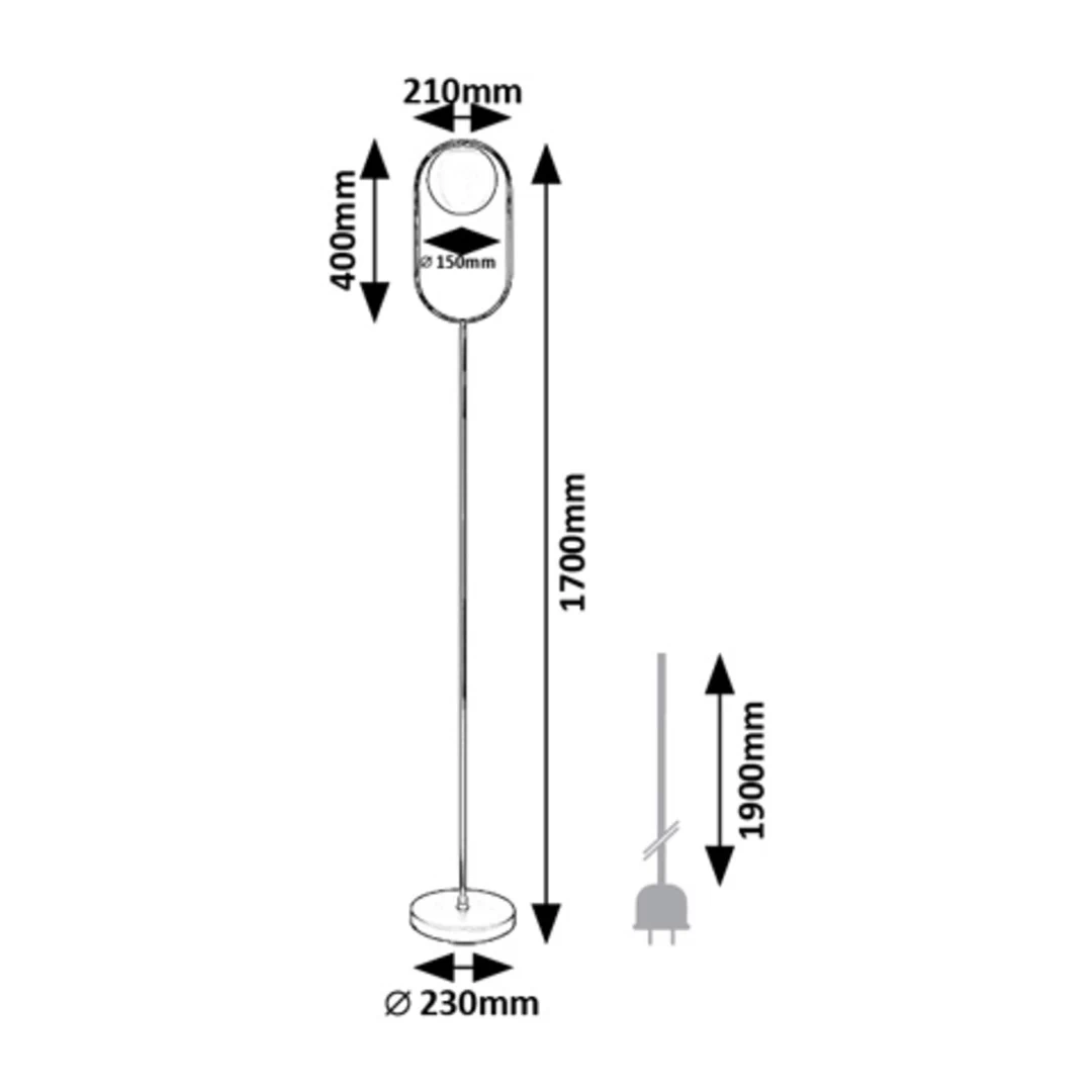 Rozmery svietidla GHITA sú nasledovné: šírka 210 mm, výška 1700 mm, priemer tienidla 150 mm. Prívodný kábel s dĺžkou 190 cm poskytuje dostatočnú flexibilitu pre umiestnenie a je osadený nožným spínačom.