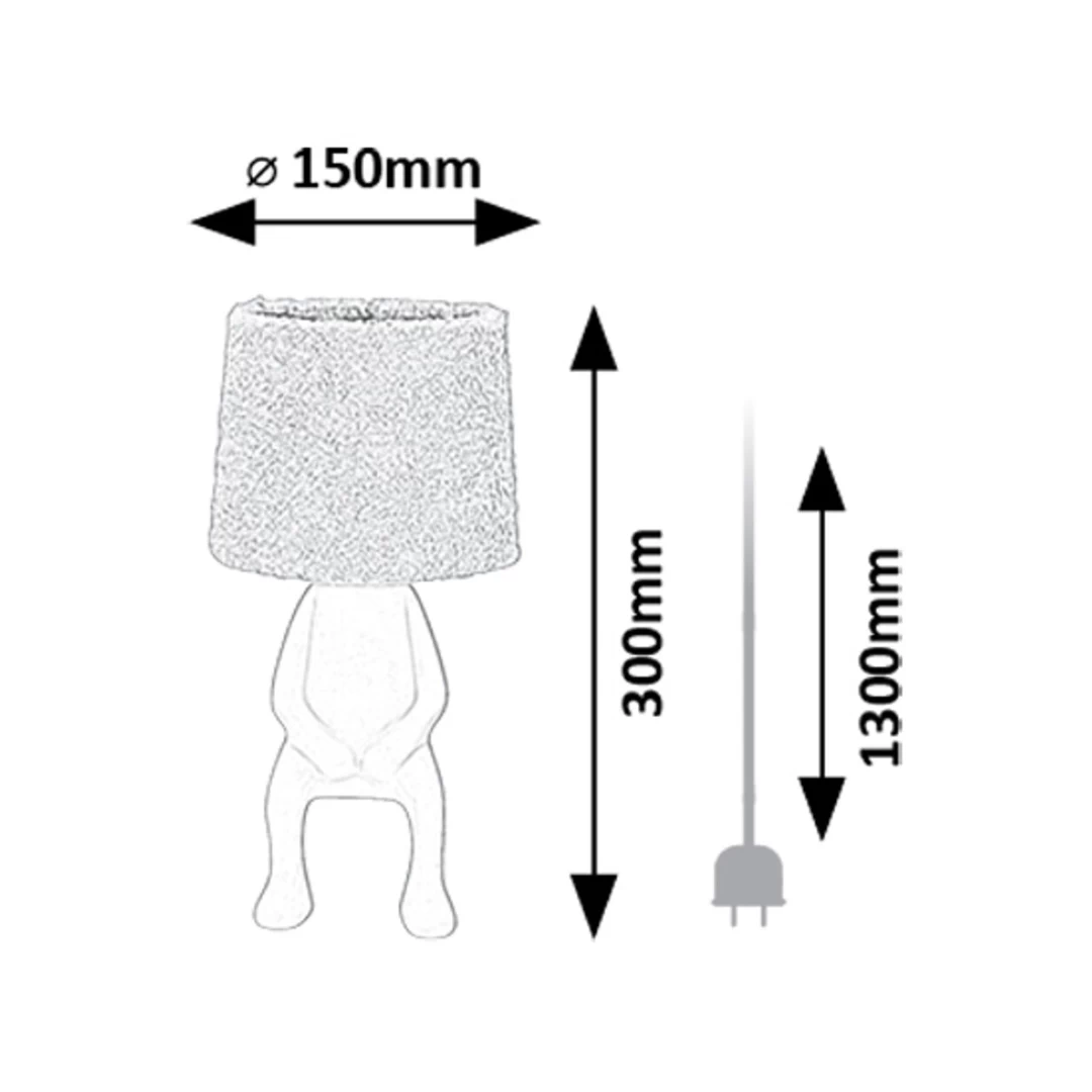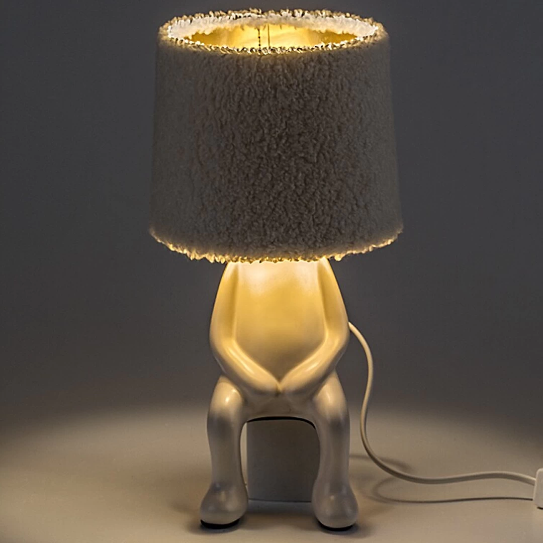 Táto dekoračná lampa stojí na skutočných nohách – alebo skôr sedí. Konštrukcia je tvarovaná ako malý človek, ktorý nesie váhu lampy. Dizajn lampy umožňuje tomuto modelu sedieť na okraji stola. Vďaka kompaktným rozmerom sa ľahko zmestí na nočný stolík, písací stôl alebo poličku, kde vytvorí príjemnú atmosféru pre čítanie rozprávok, kreslenie či popoludňajšie hry.