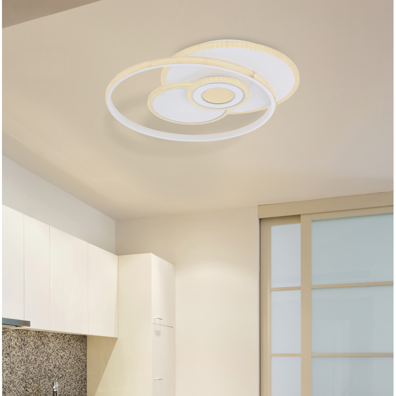 Stropné svietidlo GLOBO Roderick 50W 3600lm 3000 až 6000K s diaľkový ovládaním – 48442-50 Roderick je stropné svietidlo vyrobené z vysoko kvalitného akrylu a kovu. Originálny dizajn tohto LED stropného svietidla vytvára špeciálny efekt. Okrúhle LED interiérové ??svetlo má nočné svetlo a funkciu pamäte, je stmievateľné, má diaľkové ovládanie a jeho farby je možné fixovať (3000 – 6000 Kelvinov). Zahrnutý 50 wattový LED svetelný zdroj poskytuje 3 600 lúmenové svetlo. LED technológia je zároveň energeticky úsporná a zaisťuje veľmi rovnomerné, teplé svetlo. Na dotvorenie celkového obrazu vašej domácnosti odporúčame použiť ďalšie modely z tejto série.