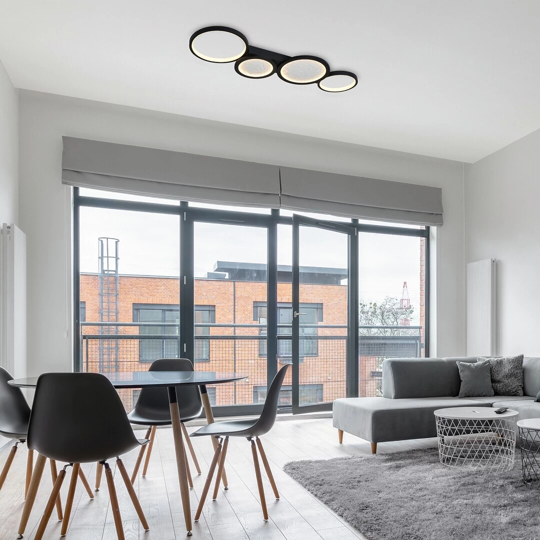 Stropné LED svietidlo Rabalux ARANIS 71379: Moderné osvetlenie s jedinečným dizajnom a rozsiahlymi funkciami Vnesiete do svojho domova moderné a elegantné osvetlenie so stropným svietidlom Rabalux ARANIS 71379. Tento jedinečný model spája čisté línie s fascinujúcou textúrou dvoch kruhov, ktorá pripomína povrch mesiaca, čím sa stáva nielen funkčným, ale aj dekoratívnym prvkom. Čierne kovové telo a biele plastové tienidlo vytvárajú nadčasovú kombináciu, ktorá sa skvelo hodí do obývačky, jedálne či spálne. S integrovaným LED zdrojom s výkonom 40 W a svetelným tokom 2300 lm svietidlo poskytuje dostatočne silné a zároveň príjemné svetlo. Vďaka diaľkovému ovládaču môžete jednoducho meniť teplotu farby... Viac