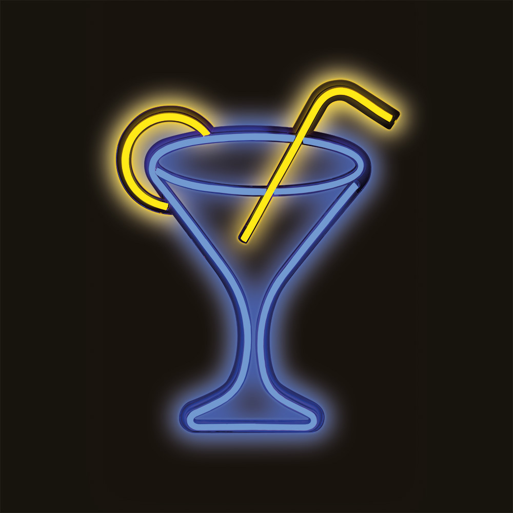 LED neónové svetlo COCKTAIL PLEXI, dekorácia na stenu modro/žltá