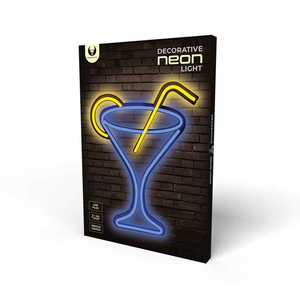 Neónová dekorácia na stenu LED svetlo COCKTAIL prekryté Plexi sklom, 5V-1A USB / 3xAA 1.5V
