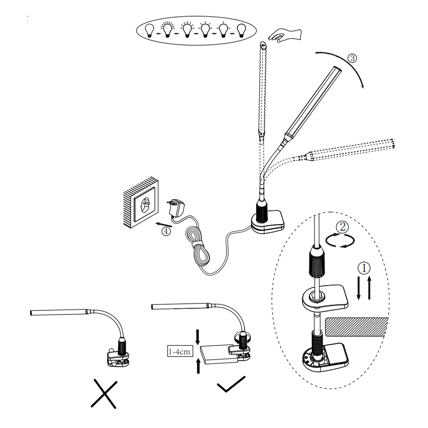 • Úspora miesta vďaka pevnému štipcu na uchytenie o hranu stola.• Dotykové ovládanie priamo na tele svietidla pre maximálne pohodlie.