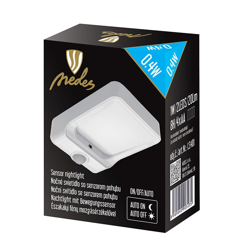 LED automatické nočné svetlo NEDES s PIR, 0.4W, 2xSMD, 20lm